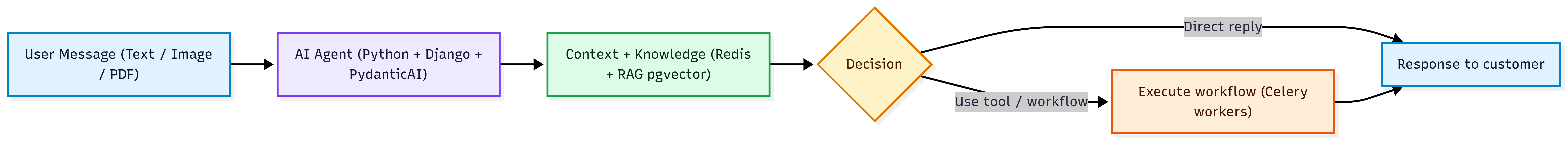 Built AI functionalities inside the CRM for support and sales teams. Developed agents that execute tools (tool/function-calling) and use RAG to respond with context from the internal knowledge base, reducing response times and improving support quality at scale.